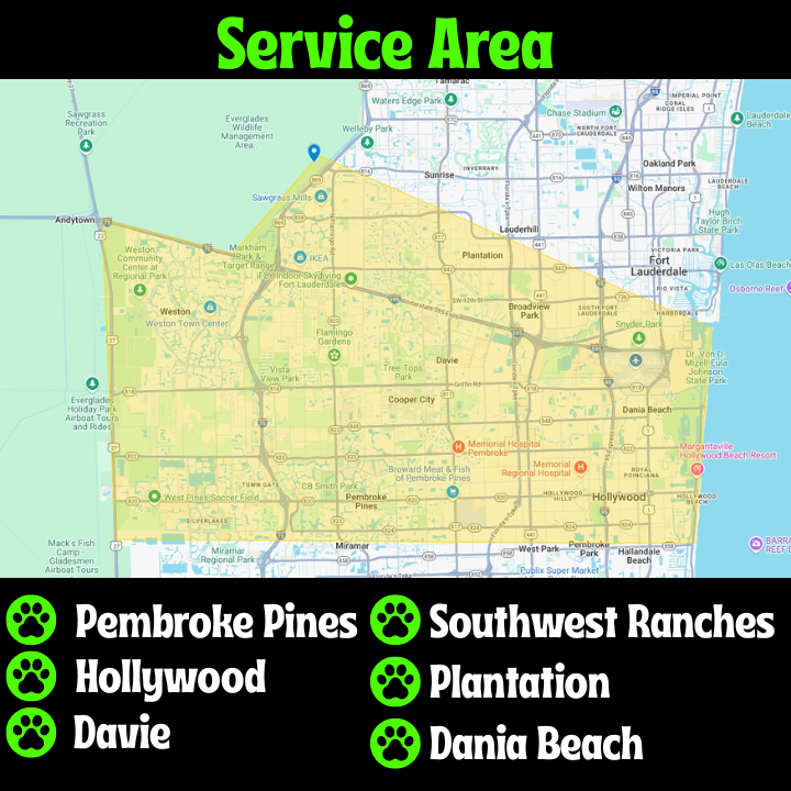 We proudly serve the Pembroke Pines, Hollywood, Cooper City and Davie areas, offering dependable weekly pet waste removal at affordable rates.